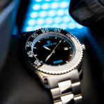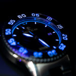 Die Corazón del Mar – Moonbat „Wizard“ hat durch ihr leuchtendes Blau etwas magisches in sich, ein kurzer Blick erweckt beinahe den Eindruck als stünde die Welt, für einen Atemzug lang, völlig still. Ihr blauer Ring und die blauen Augen auf der 12 leuchten zusätzlich zu den Zeigern und Indizes im dunkeln. Ein sehr auffallender und sportlicher Look, gerade auch mit dem optional erhältlichen Lederband. Das hochglänzende Zifferblatt verleiht der Uhr eine besondere Tiefe, welche durch die Lichtbrechungen auf der ebenso schimmernden Lünette zu einem wahrem Blickfang wird.