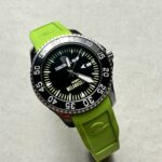 Die Indizes dieser Uhr sind in einer speziell passenden Uhr grünen Farbe gehalten, die die lebendige Farbpalette des Amazonas widerspiegelt und optisch perfekt zum froschgrünen Armband passt. Es ist ein kräftiges Grün, das an das üppige Laubwerk und die exotische Tierwelt des Urwalds erinnert und ein echtes Dschungel-Feeling vermittelt.