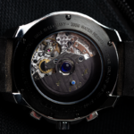 Wandert der Blick über das faszinierende Zifferblatt, so entdeckt man neben der Tachymeterskala auch ein Pulsometer bei der kleinen Sekunde. Zählt man 30 Schläge ab der Startmarkierung, kann man zu jeder Zeit seinen Pulsschlag ablesen.
