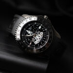 - Schwarz PVD beschichtetes Edelstahlgehäuse mit 43 mm Durchmesser und beidseitig, transparent-entspiegeltem Saphirglas